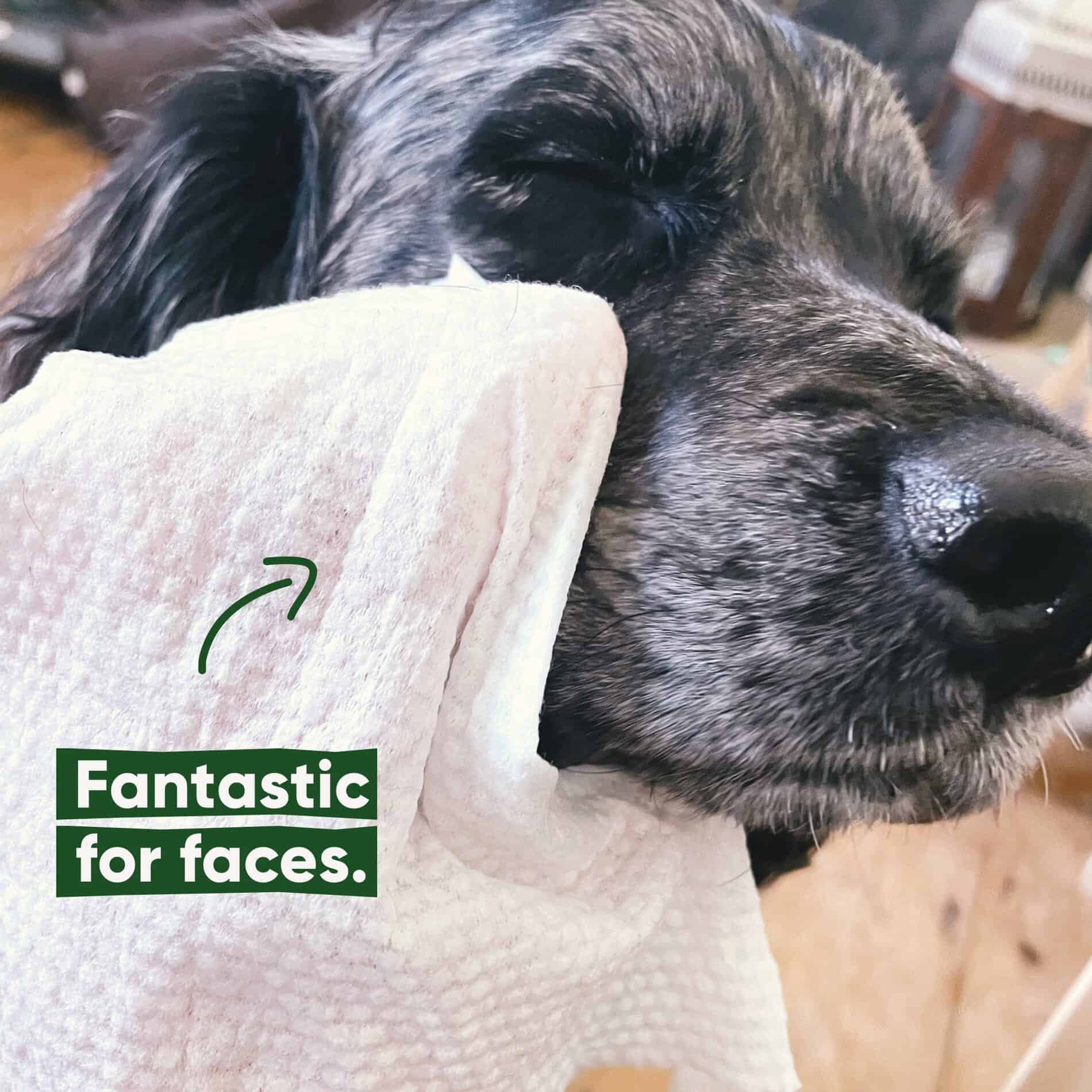 Zachte vochtige doekjes met sheaboter en aloë vera om de vuilste viervoeters schoon te maken en hun vacht glanzend en zacht te houden. Hoera, niet meer in bad!