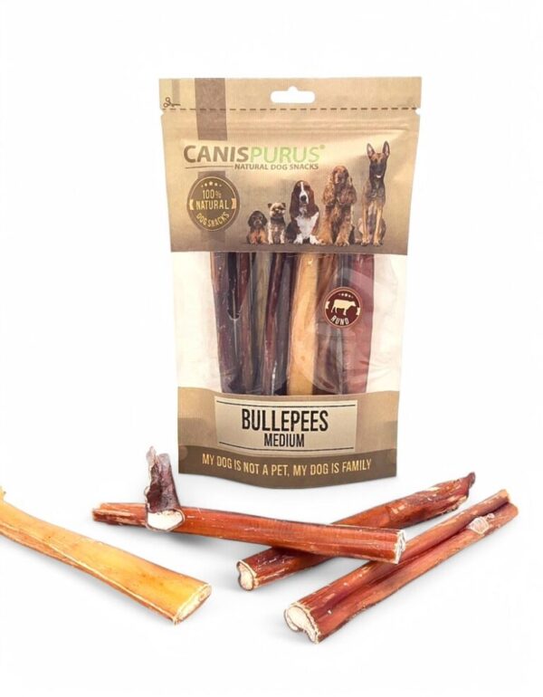 Bullepezen, wie kent ze niet. Het is een populaire hondensnack waarmee uw hond zich goed kan vermaken. Bullepezen zijn taaiere snacks waar honden lager plezier van hebben. Het ondersteunt namelijk de tandverzorging van uw huisdier. Kauwen op deze snack zorgt voor schone tanden, kiezen en gezond tandvlees. Het is geschikt voor alle hondenrassen en mag gegeven worden aan alle honden vanaf 9 maanden. (Na tandenwissel)