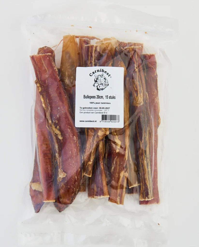 Zeer mooie kwaliteit bullepees van Carnibest, altijd goed voor lekker kauwplezier en reiniging van het gebit.