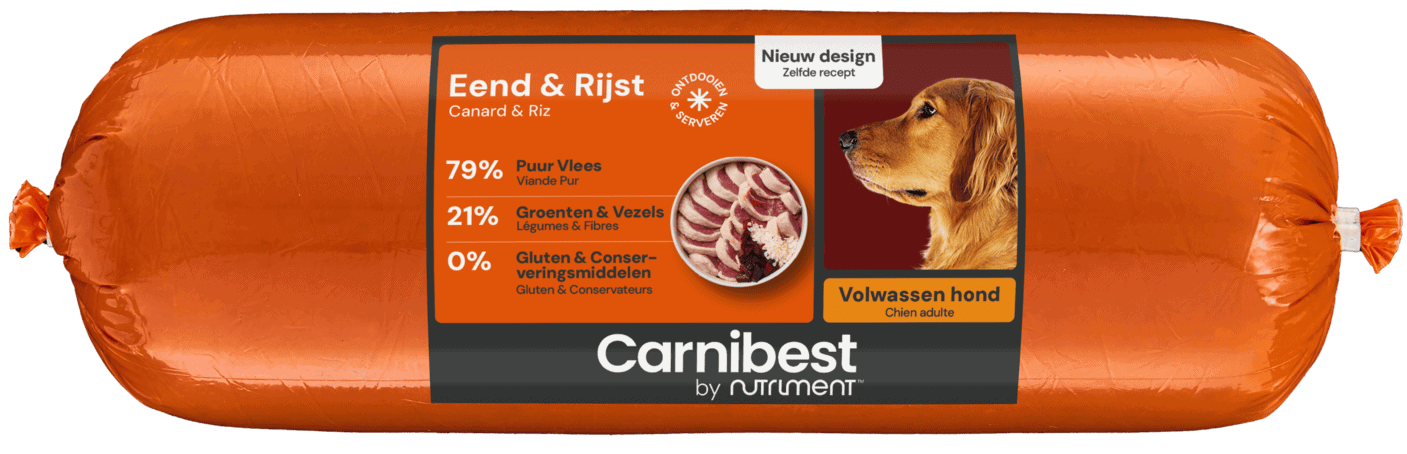 Deze voeding is zeer geschikt voor honden die voor de meest gebruikte vleessoorten allergisch of intolerant zijn. Vaak wordt door de dierenarts een eliminatiedieet voorgeschreven, dat houdt in dat er voor de hond zelf ‘gekookt’ moet gaan worden. Lamsvlees werkt vaak niet meer als eliminatiedieet, eendenvlees wel. U hoeft aan Carnibest Eend/Rijst niets toe te voegen, het is net als alle andere verse maaltijden van Carnibest, compleet.