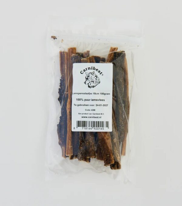 Pure lamspensstaafjes, heerlijk als kauwsnack of als tussendoor. Ideaal te geven bij een rund allergie.
