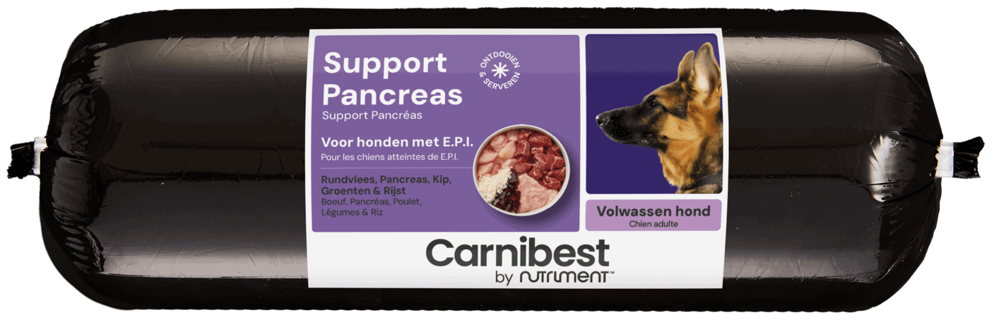 Deze voeding is speciaal gemaakt voor honden met exocriene pancreas-insufficiëntie. U hoeft aan Carnibest Natuurvoer Pancreas niets toe te voegen, het is net als alle andere maaltijden van Carnibest, compleet.