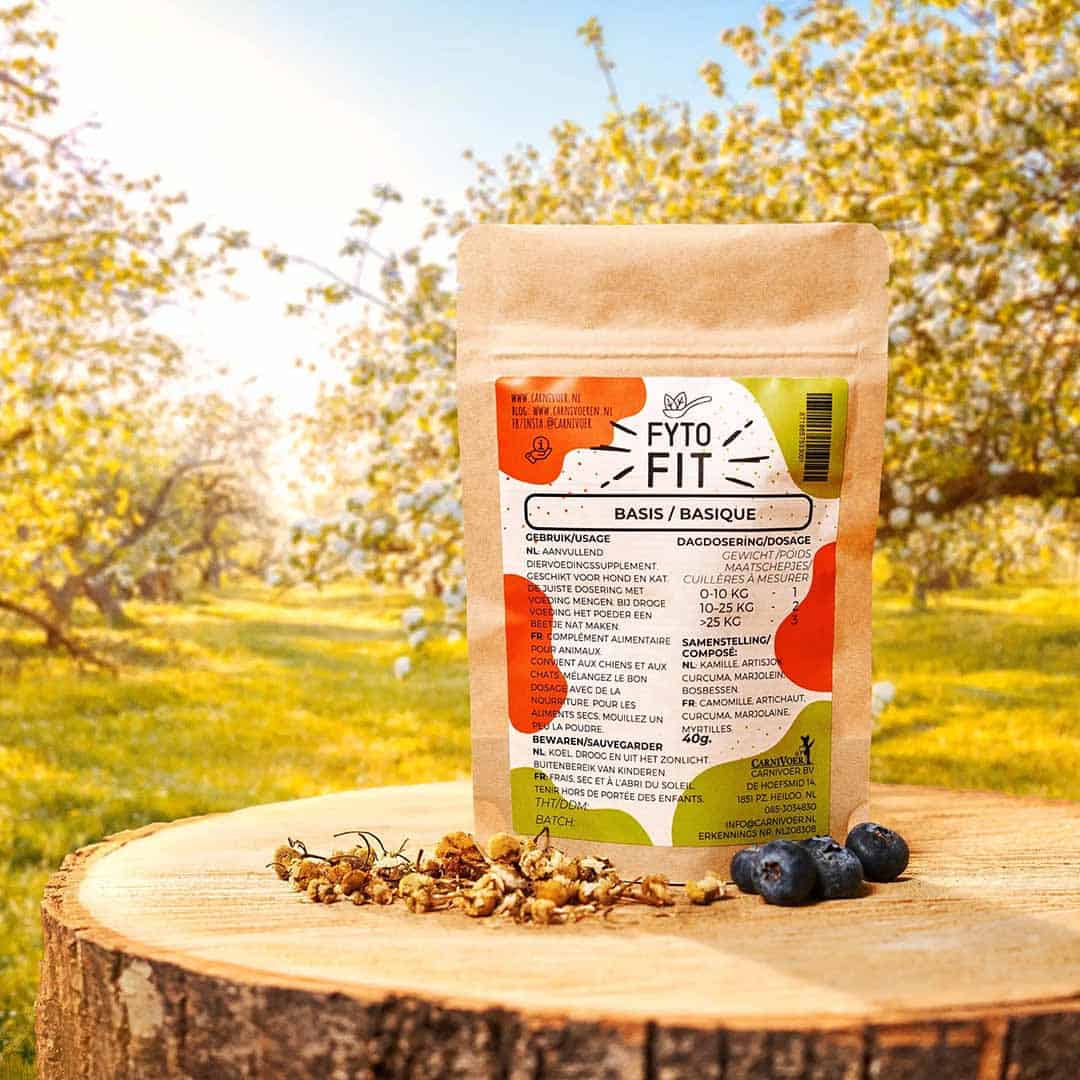 Fytotherapie is een alternatieve geneeswijze waarbij de geneeskrachtige stoffen van planten worden gebruikt. Het wordt ook wel kruidengeneeskunde genoemd. De visie van fytotherapie: Een verstoorde homeostase* in het lichaam leidt tot klachten. De homeostase* kan hersteld worden met behulp van de geneeskrachtige stoffen in planten. Zo kunnen klachten worden verholpen en voorkomen. CarniVoer fyto-fit zijn mengsels van kruiden, bessen en paddenstoelen ter bevordering van de gezondheid van honden en katten. 100% natuurlijk en zorgvuldig samengesteld door  dierenarts Erwin van Gijtenbeek. De Fyto-fit zijn een bron van kostbare fytonutriënten* die gericht kunnen worden ingezet om het evenwicht in het lichaam te herstellen.