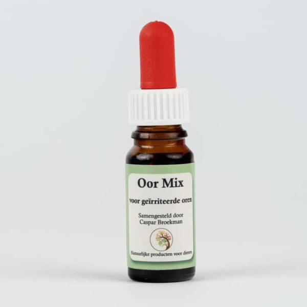 Gebruik: Spoel het oor met afgekoelde kamille thee (liefst vers gemaakt) met een wolkje betadine en bij niet pijnlijke oren ook een wolkje natuurazijn. Oor 2 a 3 x spoelen met 10ml spuit en gehoorgang masseren. Dertig minuten na het spoelen Oormix schudden en 1 druppel per oor in de gehoorgang druppelen. Sommige honden komen er omvragen: het verzacht.