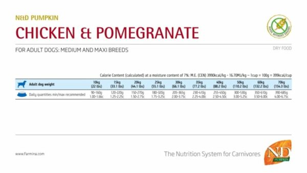 Deze brok van Farmina is geschikt voor alle medium en grotere hondenrassen en is een complete voeding wat voldoet aan de voedingsbehoeften voor volwassen honden. De voeding is graanvrij en er is gebruik gemaakt van vers en gedroogd vlees/vis aangevuld met o.a. groenten, fruit en kurkuma. De naam Pumpkin zegt het al, er is pompoen toegevoegd als zetmeelbron. Pompoen ondersteunt het immuunsysteem, is ontstekkingsremmend en is een bron van natuurlijke antioxidanten. Bovendien heeft pompoen een lage glycemische waarde wat zorgt voor minder schommelingen in de bloedsuikers.