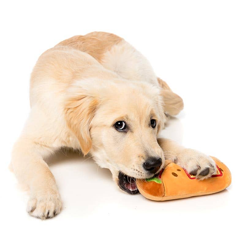 Let op: geef knuffels nooit zonder toezicht! Er zijn honden die spelen en ook honden die slopen om het slopen en tegen dat laatste is geen enkele hondenknuffel bestand.