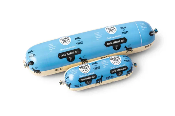 Samenstelling: haring : 95% (Spiervlees, organen en bot), Vitamine A-D-E : 2%, Zeewier : 1,5 %, aardappelzetmeel : 1,5%