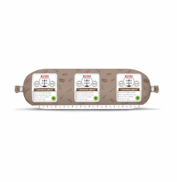 Deze voeding is een verse diepgevroren maaltijd die geschikt is voor elke hond. Deze complete maaltijd bestaat voor 40% uit rund, 20% uit eend, 20% uit kalkoen, 10% uit zalm en 10% uit paling. Deze maaltijd bevat alle essentiële voedingsstoffen, bouwstoffen, vitaminen en mineralen die uw hond dagelijks nodig heeft en is dus geschikt om elke dag aan uw hond te geven. De vitaminen en mineralen worden gewonnen uit natuurlijke bronnen. Deze bevatten hoogwaardige ingrediënten zoals organen als hart, nier, lever, long, pens en milt, ook bevat het spiervlees en karkas. Er worden geen kunstmatige stoffen of chemische vitaminen toegevoegd. Wel is het verstandig om meerdere diersoorten per week van Kivo of andere merken te voeren omdat je hond zo aan een groter scala aan verschillende bouwstoffen en aminozuren komt.
