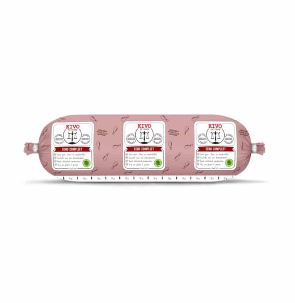 Deze voeding is een verse diepgevroren maaltijd die geschikt is voor elke hond. Het bestaat uit 100% heerlijk vers eendenvlees en 0% fratsen! Deze voeding bevat uitsluitend eendenvlees. Deze voeding is uitermate geschikt voor honden met een allergie of voedselintollerantie, omdat het maar uit één dierlijke eiwitbron bestaat. Het wordt ook vaak gebruikt voor het eliminatiedieet om allergieën te achterhalen. Deze maaltijd bevat alle essentiële voedingsstoffen, bouwstoffen, vitaminen en mineralen die je hond nodig heeft en is geschikt om dagelijks aan je hond te geven. De vitaminen en mineralen worden gewonnen uit natuurlijke bronnen. De natuurlijke bron in deze maaltijd is gevogelte, namelijk: eend. Deze bevat hoogwaardige ingrediënten zoals organen als hart, maag en lever. Het grootste deel bestaat uit spiervlees en het bevat karkas als natuurlijke calciumbron. Er worden geen kunstmatige stoffen of synthetische vitaminen toegevoegd. Het is verstandig om meerdere diersoorten per week van Kivo of andere merken te voeren omdat je hond zo aan een groter scala van verschillende bouwstoffen en aminozuren komt.