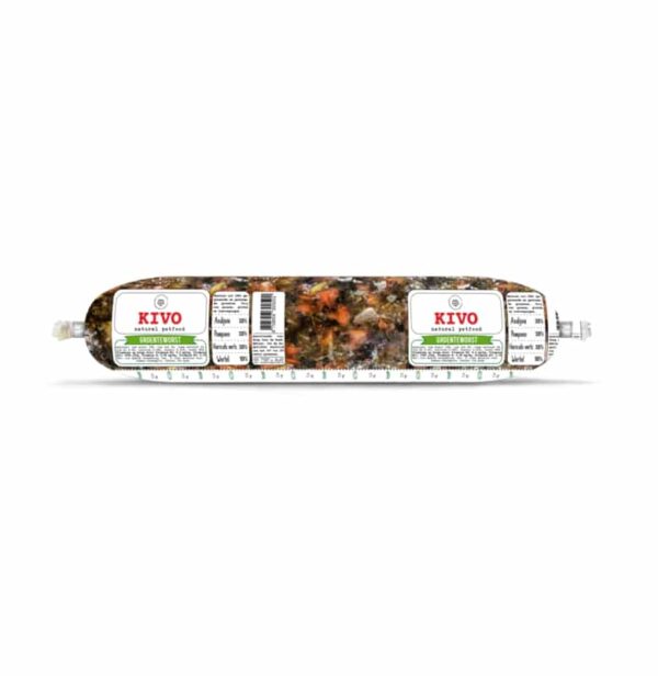 Zo kun je zelf precies doseren hoeveel groente je je hond wilt geven. Voor honden met bijvoorbeeld overgewicht of obstipatie/diarree kan meer gegeven worden. Wil je niet elke dag groenten toevoegen dan is dat op deze manier ook mogelijk. Doordat de groenteworst gestoomd is blijft deze 7 dagen houdbaar de koelkast.