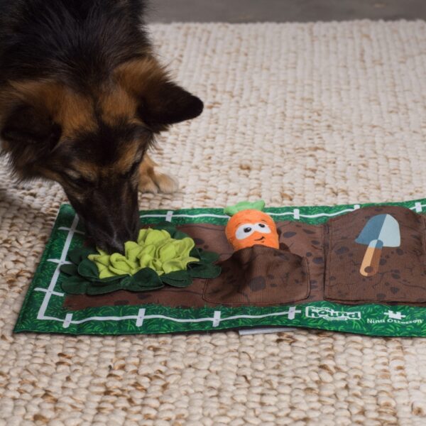 Verstopspel voor snacks, voer, speelgoed of botten. Hou je hond bezig met 3 uitdagingen. Verhoog de uitdaging door meer verstopzakjes en –sluitingen te gebruiken.  De level 2 puzzels/Activiteiten matten van Nina Ottoson/Outward Hound zijn leuk in het gebruik, makkelijk te reinigen en zeer geschikt voor zowel mentale als ook lichamelijke inspanning. De Garden Game Fun Activity Mat heeft optionele sluitingen om zo de uitdaging te verhogen. Als je hond eenmaal geroken heeft aan de snacks in het plush materiaal kun je de uitdaging verhogen door voer in de zakjes te stoppen en door ze te verstoppen onder een extra laag in het speelgoed. Voor nog meer uitdaging verstop de snacks onder de klittenband sluitingen. Plezier voor alle honden –  ongeacht leeftijd, grootte en ras.
