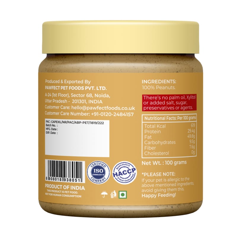 Pawfect heeft deze pindakaas speciaal ontwikkeld voor honden en is gemaakt van 100% vers geroosterde pinda’s zonder toegevoegd zout, suiker of olie. De dikke en romige structuur zorgt ervoor dat je deze voedzame snack perfect kunt gebruiken in likmatten, maar is ook zeer geschikt om medicijnen in te verstoppen. Het is ook mogelijk om de pindakaas toe te voegen aan de maaltijd, voor een extra bron van eiwitten, gezonde vetten en vitamine B en E.