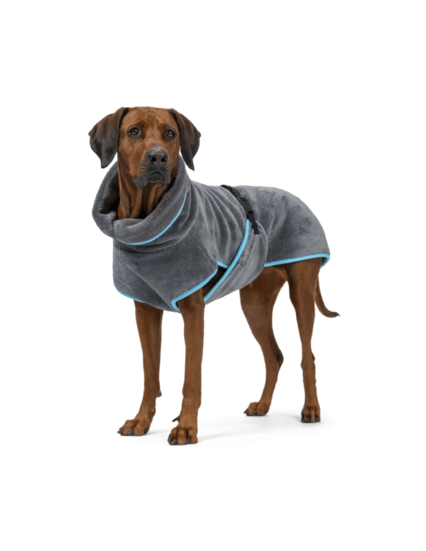 Het materiaal van de hondenbadjas is zeer absorberend en absorbeert meer vloeistoffen dan vergelijkbare modellen. De badjas is wasbaar in de wasmachine op 60 °C en geschikt voor de droger, waardoor hij zeer onderhoudsvriendelijk is. Geuren en vuil worden zo veilig en gemakkelijk verwijderd en door de verstelbare en flexibele heupriem en de keuze uit elf maten heeft de badjas een zeer goede pasvorm en bedekt hij veel vacht dankzij de hoge kraag en de omsluitende staart. De badjas is OEKO-TEX gecertificeerd, hoogwaardig afgewerkt en scoort duidelijk in functie. Beslist een hoogwaardige kwaliteit badjas!