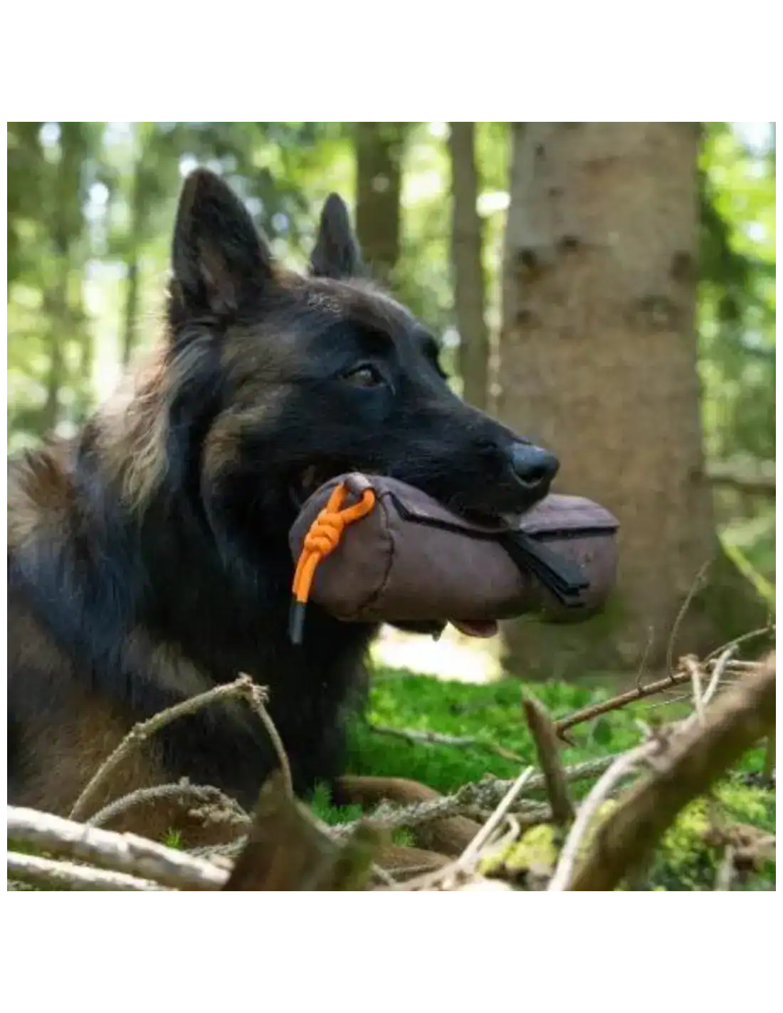 In het geval dat uw hond het nut er niet van inziet om Kurt bij u terug te brengen, zult u de voerdummy in het gras of bos snel herkenbaar zijn aan het oranje lint.
